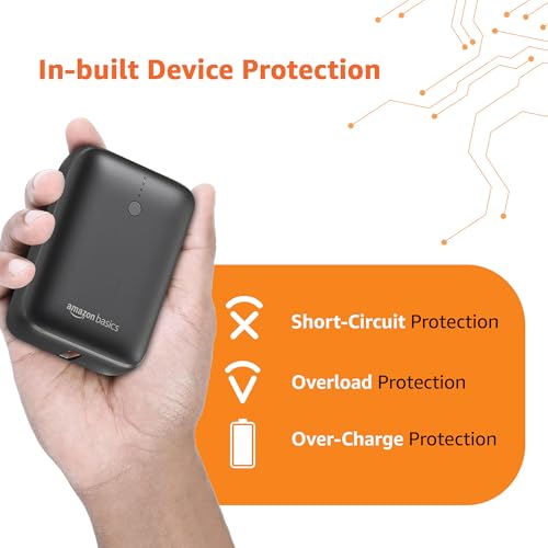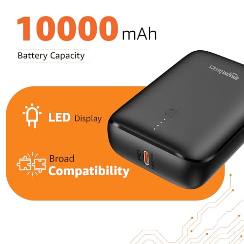 Amazon Basics 10000mAh Nano Power Bank | PD20W + 22.5W Fast Charging | LED Display | Broad Compatibility | Built-in Device Protection | Compact Design | Rapid Charge | Extended Power on The Go
